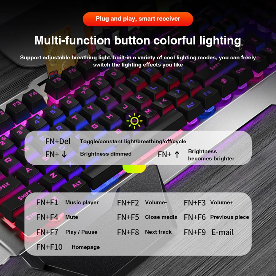 Recharging Wireless Gaming Mechanical Keyboard with Wireless Mouse
